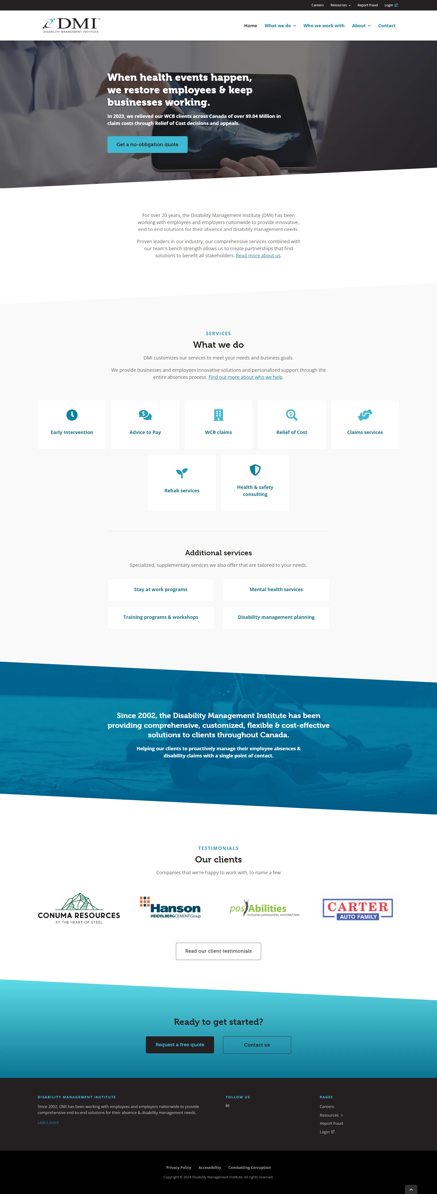 Both sites had content written and approved ahead of design, and were brought onto the same platform and theme as the other corporate sites to make changes easy for myself and my team. CSBT and DMI were both given a modernized colour palette, and were thoroughly redirected (from old pages to new ones).